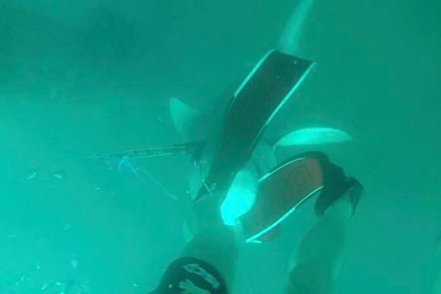 Pye shared underwater GoPro glimpses of the close call on Facebook.